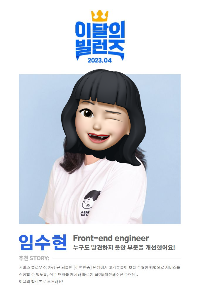 그 결과 좋은 성과까지 함께 얻게 되어서 사내 추천제도인 "이달의 빌런즈"로 선정되기도 했습니다 👑