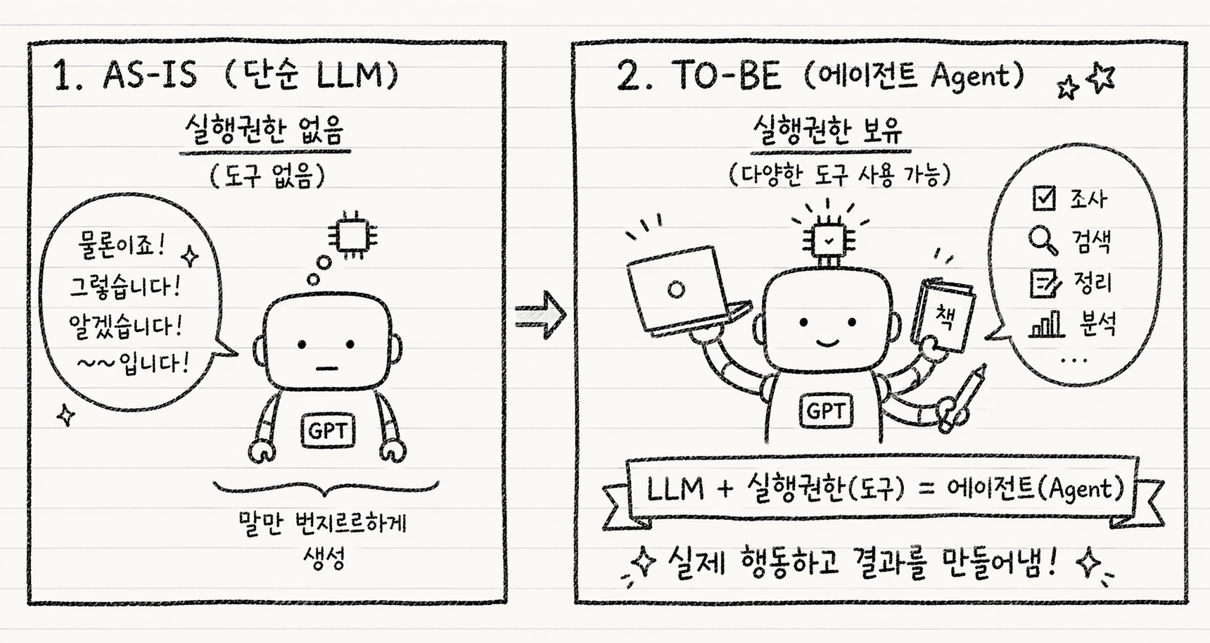 앞서 알아본 LLM은 단순히 문장을 생성하는 것이 다였어요.