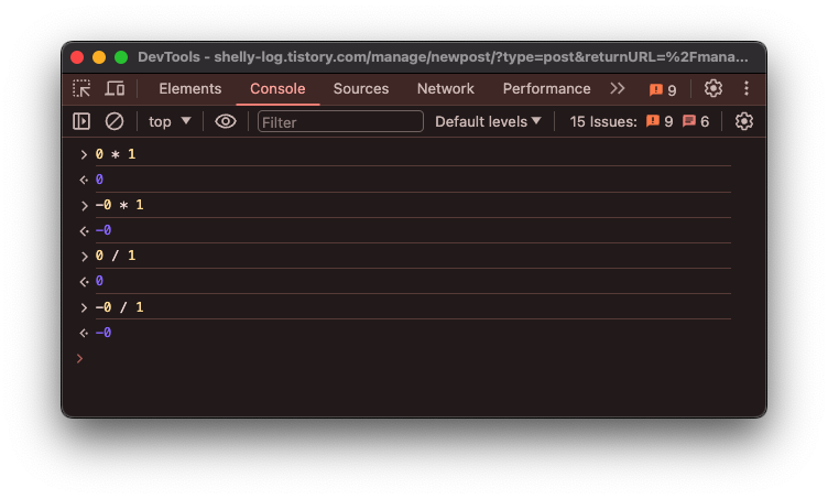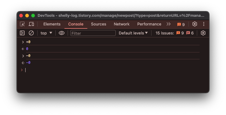 javascript 콘솔에서 `-0`을 입력하면 `-0`을 반환합니다.