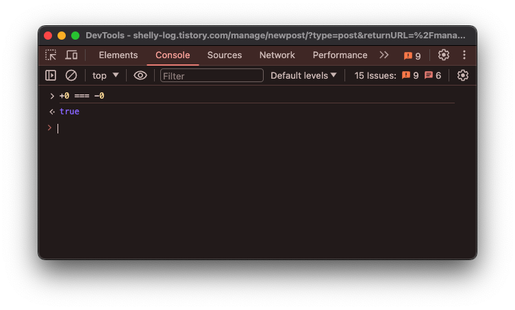 `+0`과 `-0`을 비교해 보면 `true`를 반환합니다.