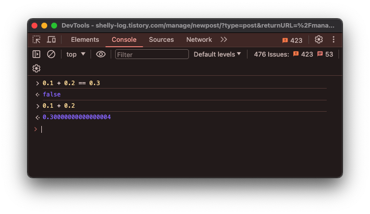 `0.1 + 0.2`의 값을 찍어보니 `0.30000000000000004`를 반환하는군요.