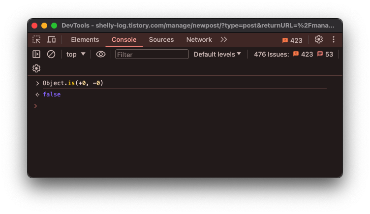 (===)하면 `true`를 반환한다. - `+0`과 `-0`을 `Object.is()`로 비교하면 `false`를 반환한다.