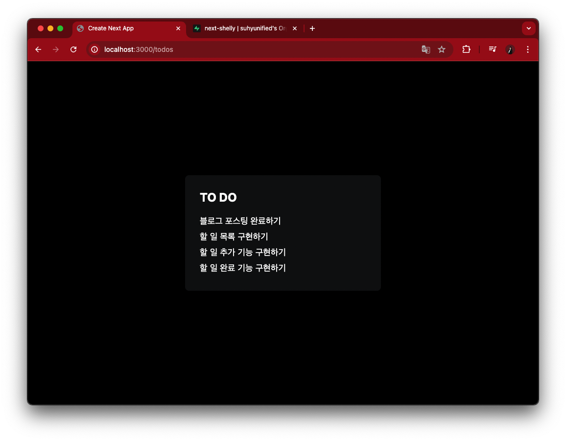 지난 글에서 생성했던 `src/app/todos/page.tsx` 파일을 아래와 같이 수정했습니다.