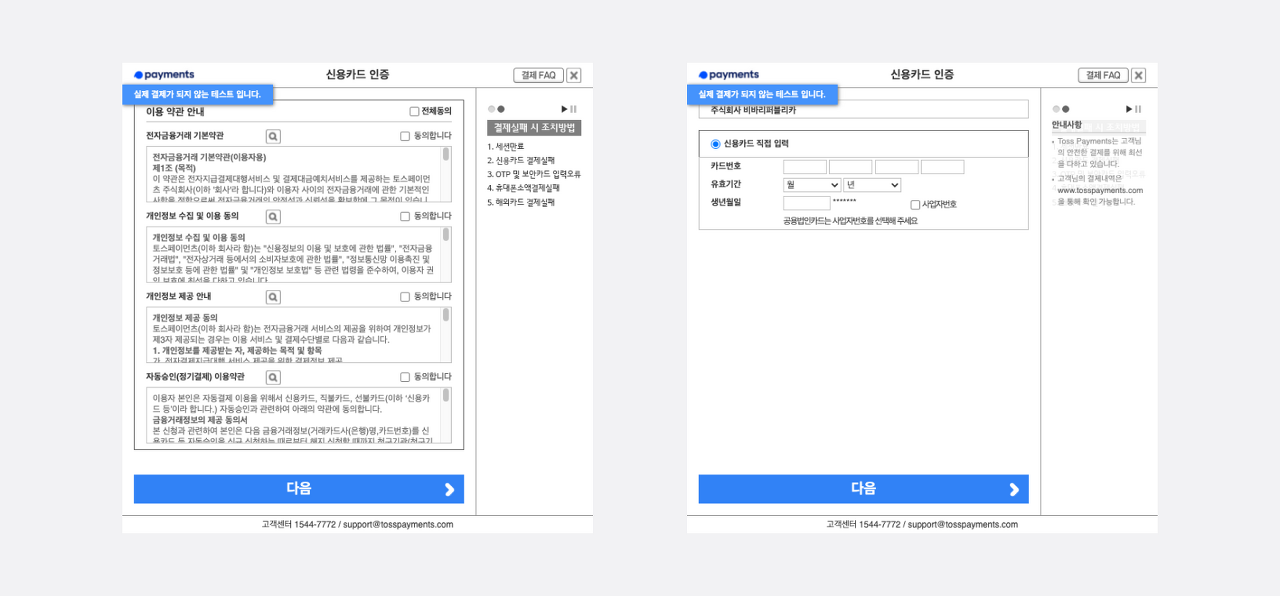 카드를 선택하거나, 카드번호, 비밀번호를 입력하는 등 결제 정보를 커스텀한 화면에서 입력하고 싶다면 이 글(작성중입니다 ㅎㅎ..)을 확인해주세요!